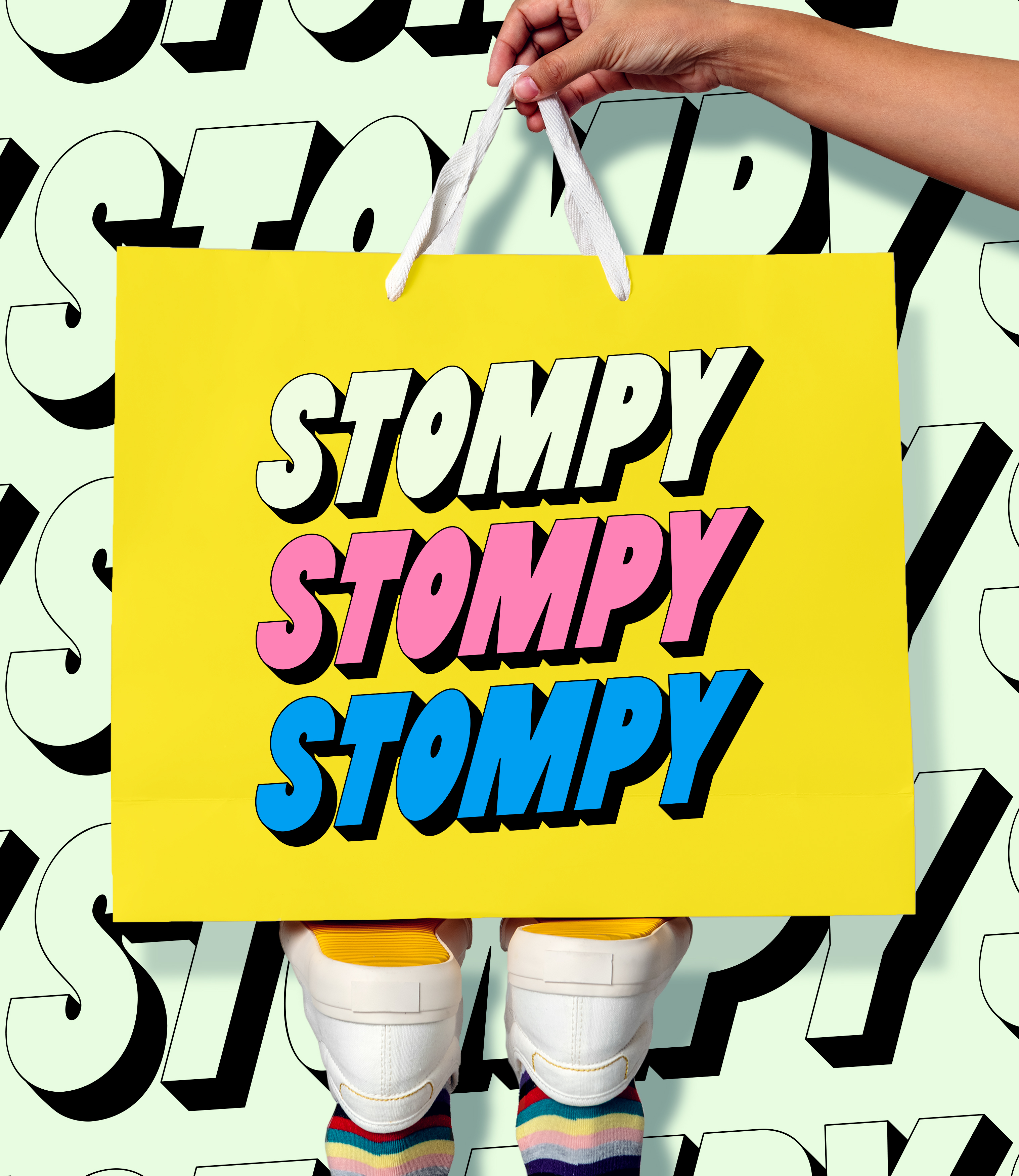 The name Stompy refers to the art of grape stomping. We illustrated this concept through extruding type and playful repetition throughout the brand identity.
